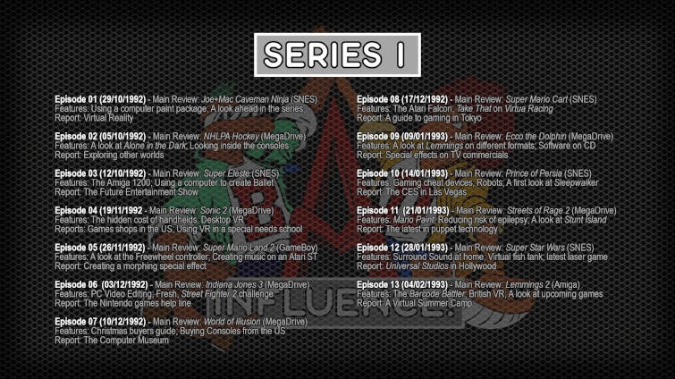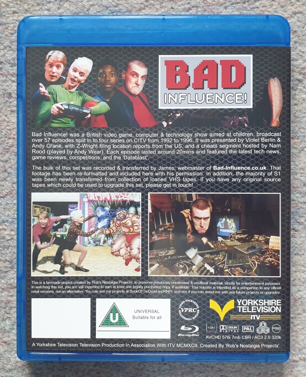 Bad Influence was a UK CITV TV show that ran for 57 episodes over 4 series', from 1992 to 1996, dedicated to video games. Many of the episodes are still available online, and on YouTube. This set pulls everything together in to one presentation, with extras. This Blu-Ray set is an update, to the original 12-disc DVD set produced by James from