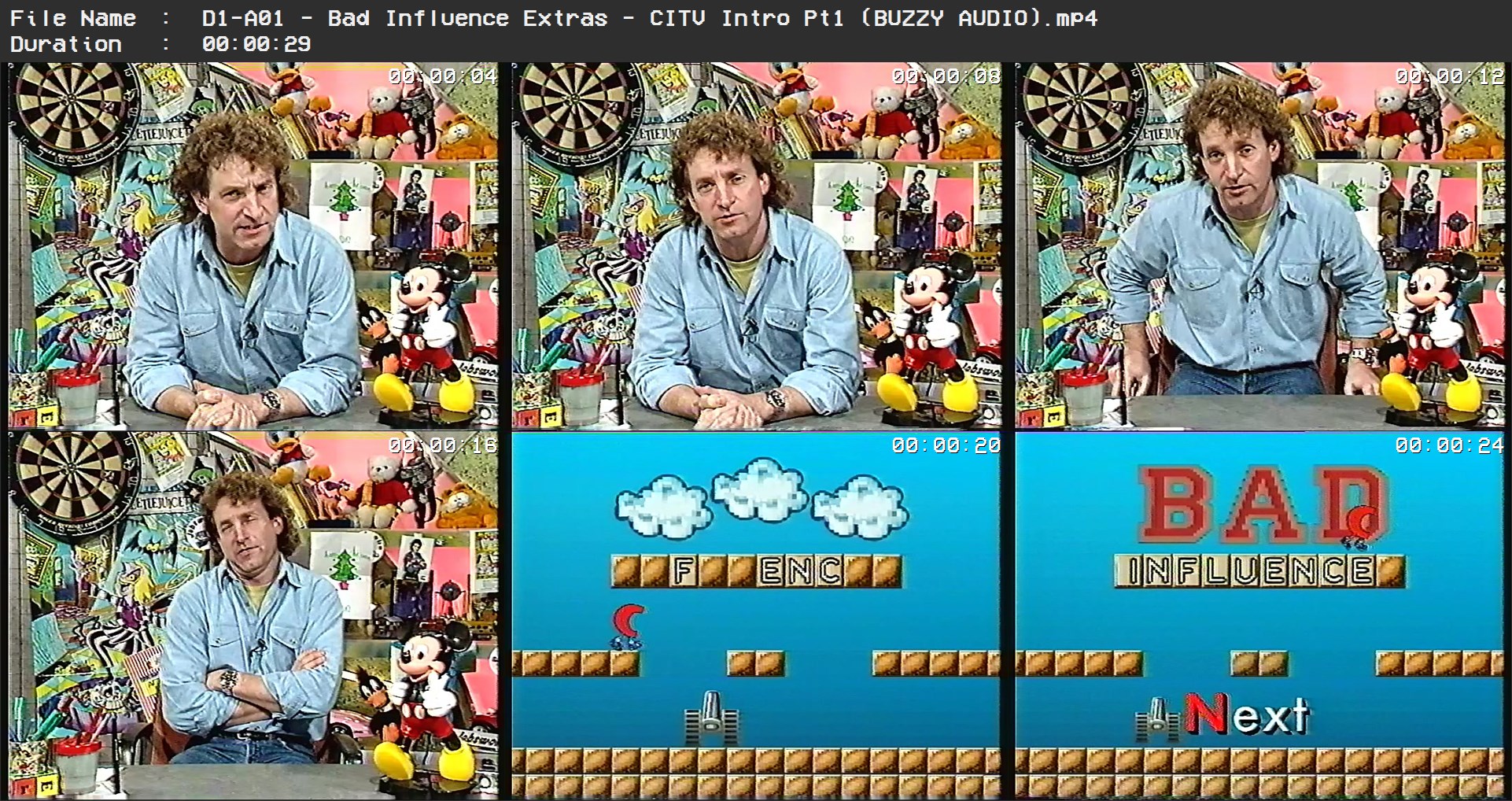 Bad-Influence.co.uk way back in 2006. James traded that with me around 2010, and I have his permission to re-author and include his footage here. I also asked after his source VHS tapes, but they were unfortunately lost to mould years back.