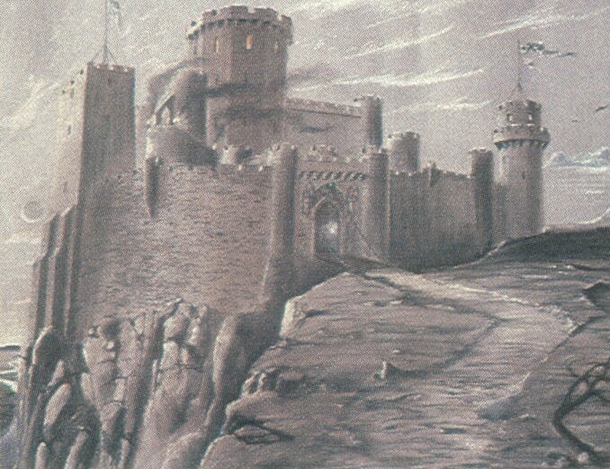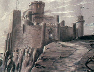 The exterior castle set was modelled after Warwick castle in England, and was augmented using the Introvision process. Only certain parts of the full size castle were physically built, being around twenty-five feet high at its lowest up to sixty feet at its highest point. Parts built included the lower courtyard, the gatehouse, and the blacksmiths shop. The remaining portions of the castle were added as a post-production effect. This was achieved by blending live footage with a highly detailed miniature castle. It had six towers including a square one, and another with a spiral staircase up the outside.