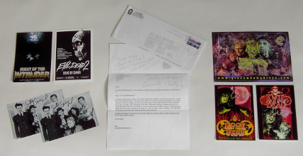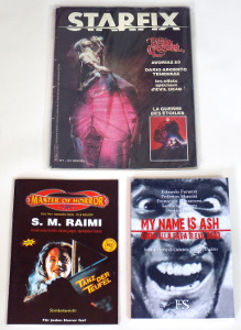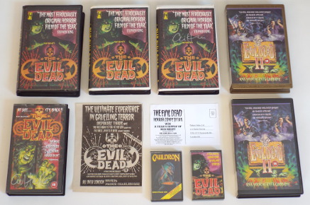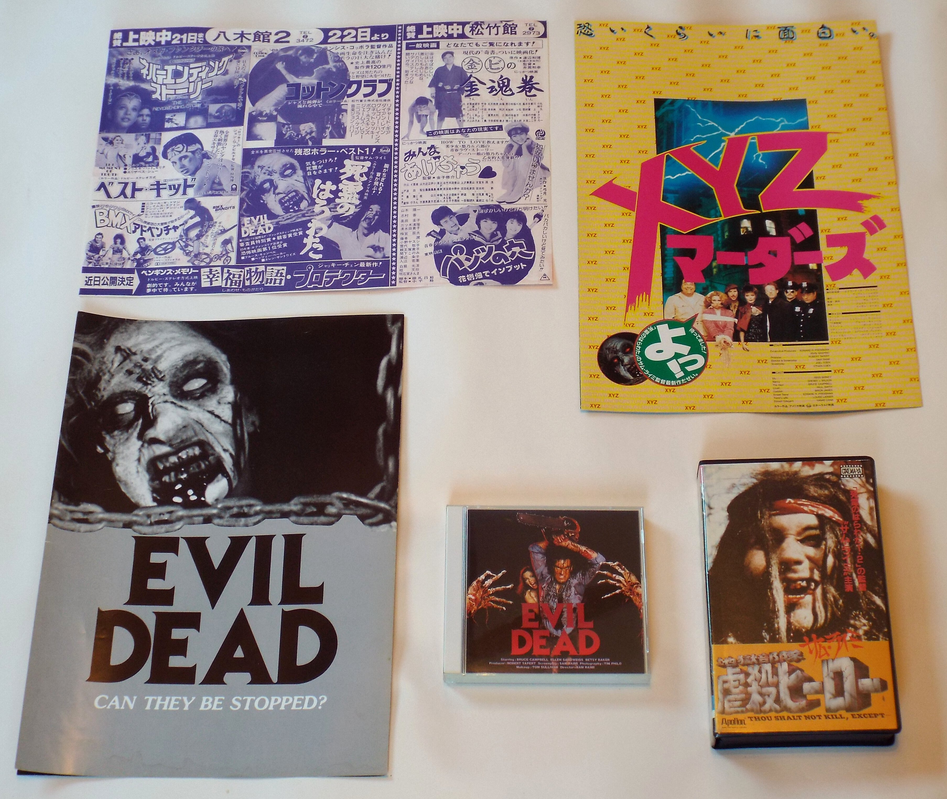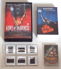 While it's easy to imagine the creator of this site having a huge collection of rare Evil Dead Trilogy related items, actually that isn't really the case. I do own a small collection but have never been an overly avid collector of physical material. I've have bought and sold a number of notable pieces over the years, along with some I'd wish I'd kept. Most of my rarest acquisitions involve my extensive Evil Dead Trilogy video material collection which you can see Here. Further, many of the rare In-Print and Magazine item scans actually came from others, mainly from a fellow UK Evil Dead collector; Shaun. His extensive Evil Dead Trilogy collectables archive site is currently under contruction and a link will be posted here when it's up and running, but his collection is truly impressive.