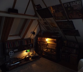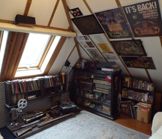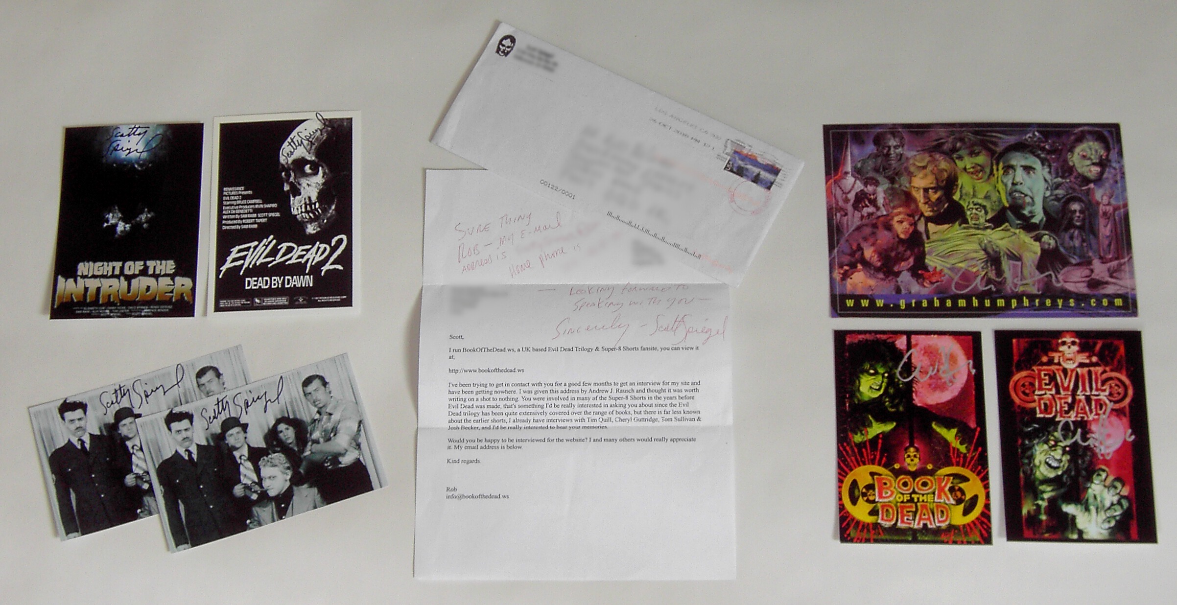 Asides from owning some of the run-of-the-mill widely available retail items like DVDs, Blu-Rays, books and magazines, I do own a small number of very rare pieces, including some Book Of The Dead 1981 premiere promo items (a program, ticket & flyer), 129 original The Evil Dead photos & slides, and a collection of souvenirs taken in 2012 from nine The Evil Dead & Evil Dead II filming locations, which are now in a specially contructed glass display case. In addition, I've also undertaken a number of physical replica projects over the years, including replica 'hand' chainsaws which you can still buy at EvilDeadChainsaws.com, an Evil Dead II 'Kandarian Dagger', and a replica of the pendulum clock seen in The Evil Dead & Evil Dead II, as well as a number of fanmade DVD projects including The Evil Dead: The Treasures Collection DVD, Book Of The Dead DVD, Sam Raimi's Super 8 Shorts Fanmade DVD, and Josh Becker's Super 8 Shorts Fanmade DVD.