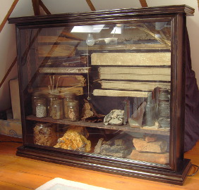 The Evil Dead & Evil Dead II filming location souvenir display case populated with many other items from my collection
