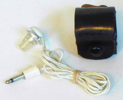 With player cover, The Evil Dead identical rape reels, original Panasonic microphone, and white earphone.